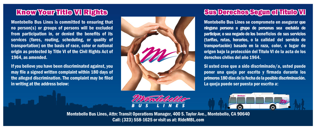 Title VI Notice for Montebello Bus Lines – Interior Bus Card